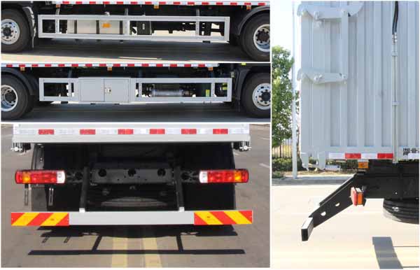 該車專用裝置為箱體、液壓控制系統等專用裝置,主要用于實現垃圾的裝載和轉運卸料作業.卸料方式為后卸.車廂頂部封閉,不可開啟./后部防護裝置材料:Q235碳鋼,連接方式均為:螺栓連接;后防護截面尺寸120×60mm,后部防護離地高度(mm):460.ABS系統型號/生產企業對應關系:ABS-E/威伯科汽車控制系統(中國)有限公司;ABS/ASR-24V-4S/4M/東科克諾爾商用車制動系統(十堰)有限公司;CM4XL-4S/4M/廣州瑞立科密汽車電子股份有限公司;3550D-1010/東科克諾爾商用車制動系統(十堰)有限公司.該車安裝具有衛星定位功能的行駛記錄儀.發動機型號與油耗值對應關系為(L/100km):B6.2NS6B210/26.00,B6.2NS6B230/26.91,F4.5NS6B190/24.40,D6.7NS6B230/26.80,F4.5NS6B220/24.40.該車可選裝直接供電式ETC車載裝置.僅采用底盤5750mm軸距改裝.隨底盤選裝限速裝置,限速89km/h.該車后軸僅采用鋼板彈簧懸架。