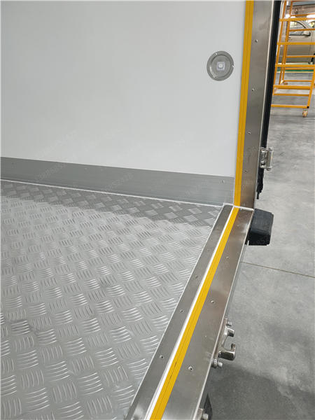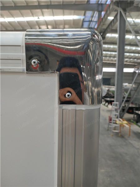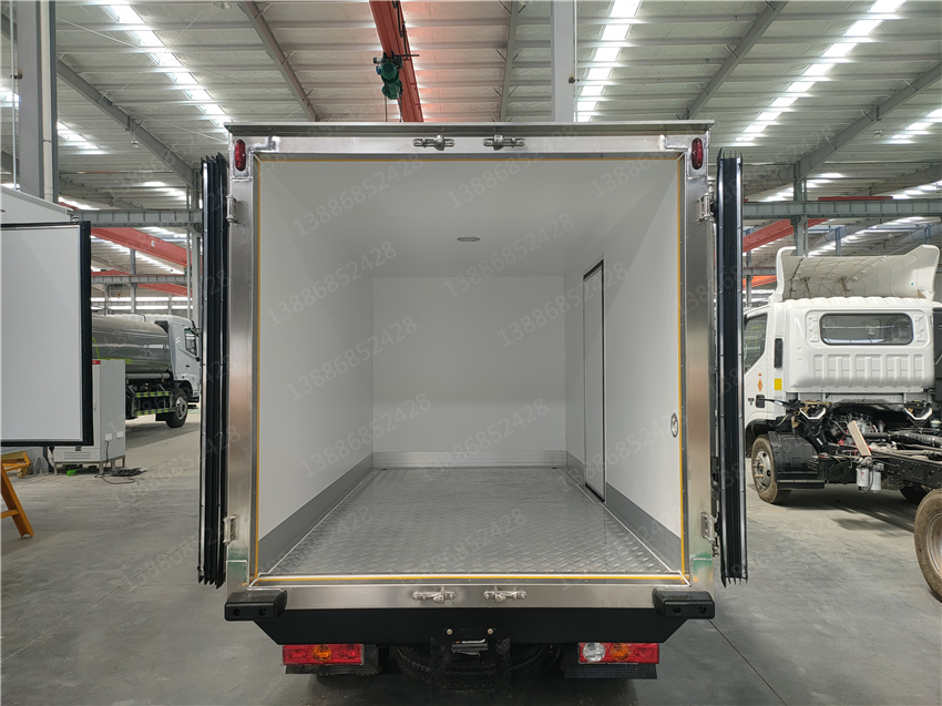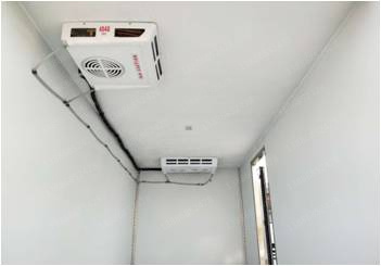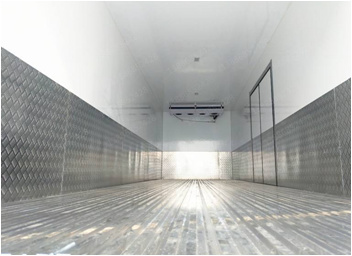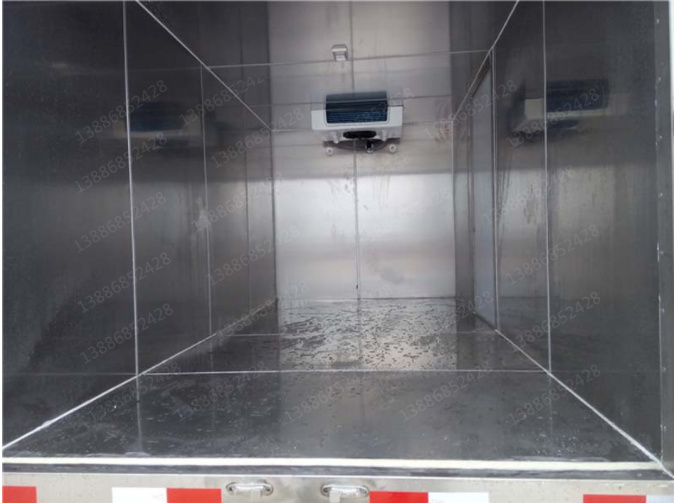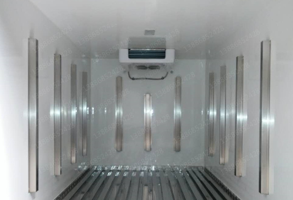 采用國際最先進的1200噸真空吸附一體成型制造。通用三明治斷橋隔熱工藝,是由鍍鋅管骨架加上中間8CM保溫環保材質擠塑板填充、防水木板用螺絲連接,壁板選用國內優質的機制1.8mm厚度玻璃鋼,內壁選用1.2mm厚度熱縮板,廂體厚度80mm,門框厚度80mm,底板上面整體鋪鋁花紋板,高強度粘合劑,箱體真空吸附8小時以上,確保箱體一次成型杜絕箱體起包,脫膠。廂體周邊3mm加厚型鋁合金包邊,不銹鋼包角,304不銹鋼門鎖,不銹鋼一體式門框,加大型防碰撞膠皮,廂內LED節能照明燈。可選-5°至-18°制冷機組.