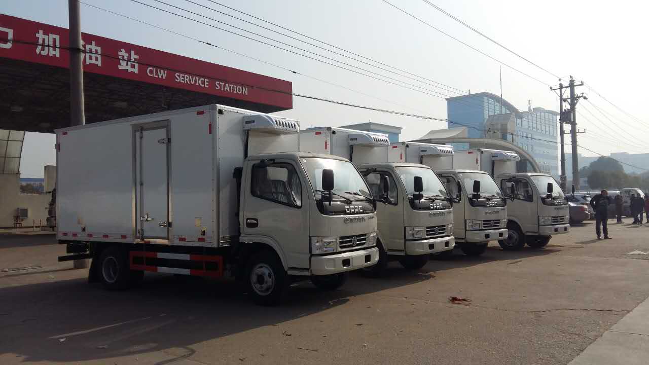 經過十余天的生產,重慶用戶的四臺冷藏車已經生產完畢,配備朝柴99馬力的過我發動機5擋變速箱,700-16鋼絲胎,箱體4000X1880X1850mm,帶ABS,氣剎,電子儀表,帶方向助力,駕駛室空調。首發4臺,并且簽訂了10臺購車協議!