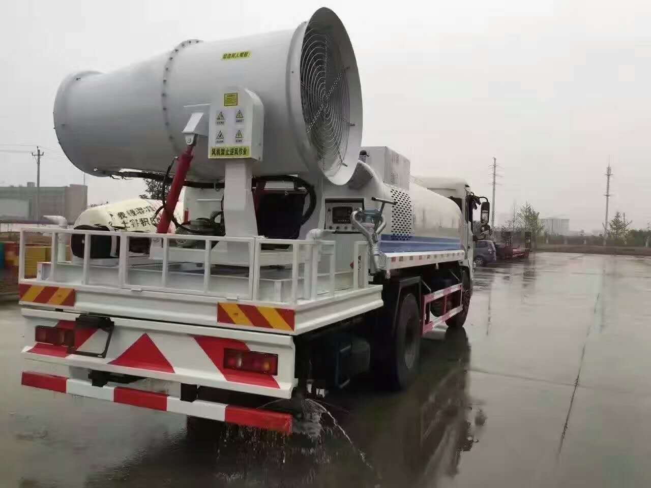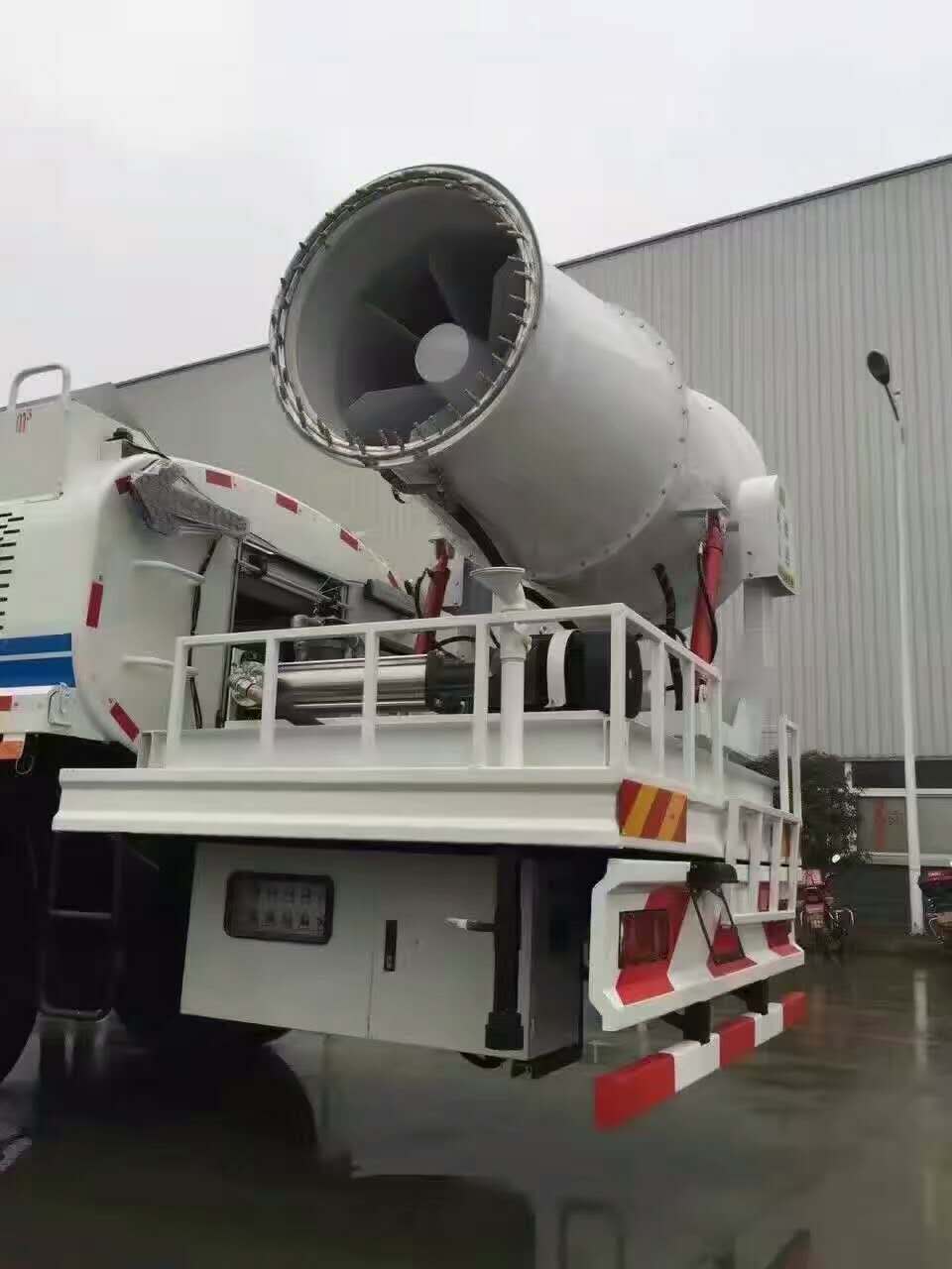 上裝采用武漢碳鋼板定制8噸水罐,配備杭州威龍灑水泵,帶前沖后灑,后置工作平臺(tái),配備山東北華80型風(fēng)機(jī),帶柴油發(fā)電機(jī)組。最大霧化可達(dá)80米。降塵首選。