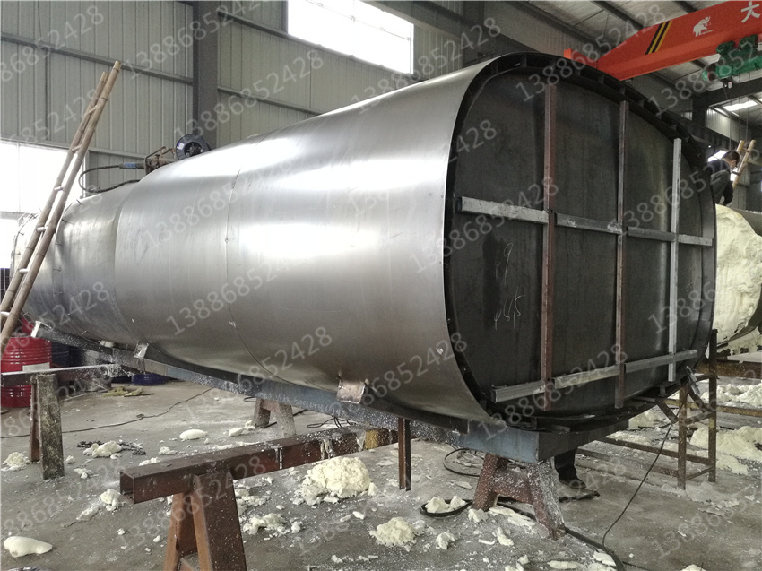 保溫熱水運與普通灑的區別,就是在水罐體外多加了一道保溫層。保層溫的制作是在水罐外部另外焊接10mm厚的支撐骨架,然后用保溫材料將骨架內部填充滿,*后在骨架外蒙上一層外皮。保溫層外表鐵皮采用8mm厚高強度耐磨板,可選擇使用不銹鋼分鏡面8K或磨砂板。