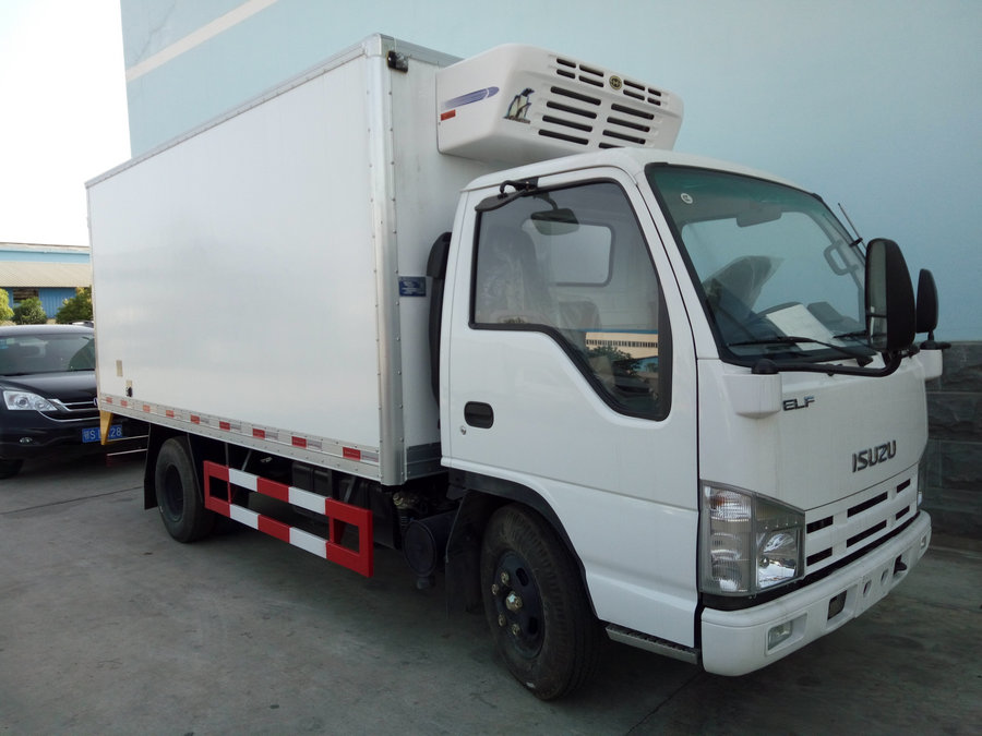 冷藏車廂體:采用國標A級聚氨酯保溫材料,厚度為8厘米,廂體內外采用玻璃鋼材質全包裹。不銹鋼鎖件。包角、包邊鋁合金型材。底盤采用高強度花紋鋁板定制。可選裝肉鉤導軌,和底部通風槽