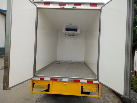 冷藏車廂體:采用國標A級聚氨酯保溫材料,厚度為8厘米,廂體內(nèi)外采用玻璃鋼材質(zhì)全包裹。不銹鋼鎖件。包角、包邊鋁合金型材。底盤采用高強度花紋鋁板定制。可選裝肉鉤導(dǎo)軌,和底部通風槽。