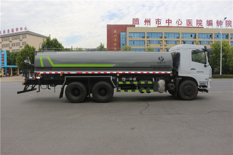 東風(fēng)專底D3L灑水車_東風(fēng)專底20方灑水車_湖北盈通專用汽車有限公司,該車主要用于城鄉(xiāng)園林綠化,路面噴灑,除塵和降溫;主要裝置為水罐及噴灑裝置;隨底盤選裝駕駛室;罐體有效容積:15.17立方米;罐體外形尺寸(長×長軸×短軸)(mm):6900×2370×1360;側(cè)后防護(hù)情況:側(cè)、后防護(hù)材料均為:Q235碳鋼,連接方式均為:螺栓連接,后部防護(hù)截面尺寸(mm):120×50,后部防護(hù)離地高度(mm):460;ABS型號(hào)/生成廠家:3631010-C2000/東科克諾爾商用車制動(dòng)系統(tǒng)(十堰)有限公司。選裝附件布局。 |