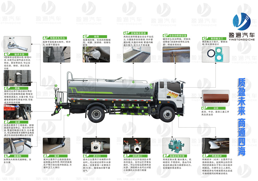 華神25方灑水車,東風華神灑水車,國六25方灑水車,前四后八灑水車價格,該車主要用于城鄉(xiāng)園林綠化噴灑;主要裝置為罐體及噴灑裝置:罐體總容量:20.1立方米;罐體有效容積:19.14立方米;罐體外形尺寸(長×長軸×短軸)(mm):7300×2450×1650;側、后防護材料均為:Q235碳鋼,連接方式均為:螺栓連接,后部防護截面尺寸(mm):120×50,后部防護離地高度(mm):490;ABS的型號及生產廠家:3631010-C2000/東科克諾爾商用車制動系統(tǒng)(十堰)有限公司,J ABS/焦作博瑞克控制技術有限公司.隨底盤選裝駕駛室,選裝噴霧裝置樣式,選裝箭頭指示燈裝置,選裝自動球閥安裝位置,選裝高位花灑管道樣式,選裝水炮支架位置,選裝擋泥板樣式,僅采用軸距(mm):1850+3200+1350改裝. |